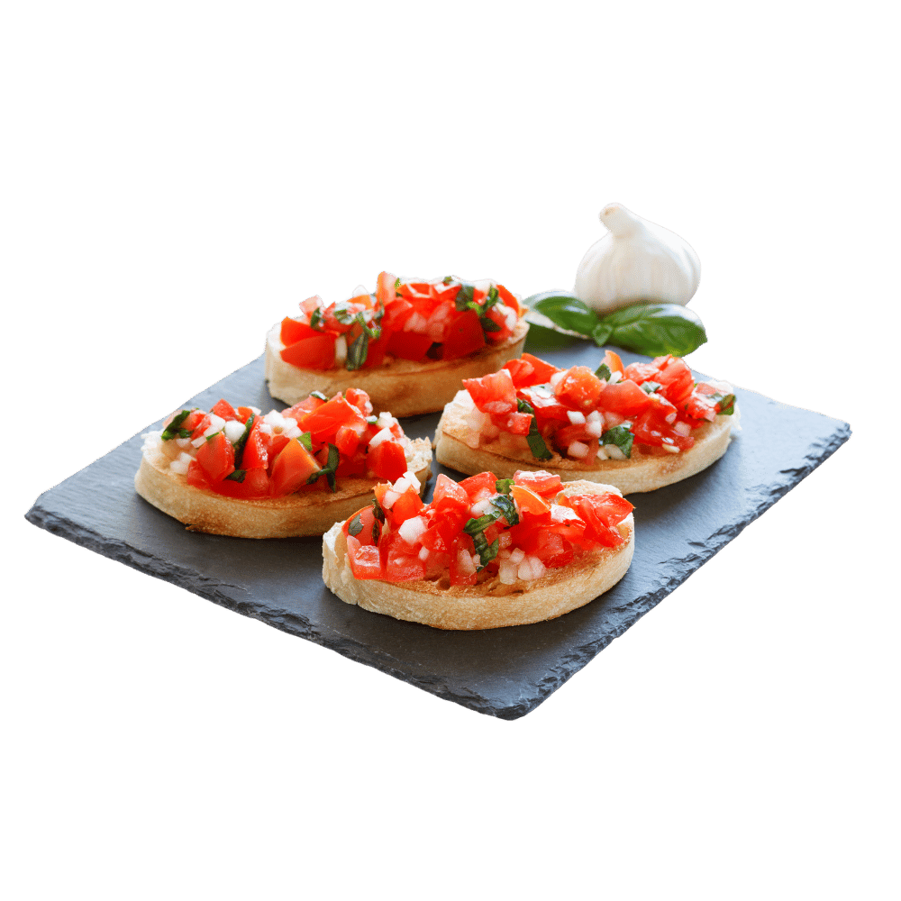 warmes Brot mit Tomaten, Mozzarella, Oregano und Olivenöl (5 Stück)
