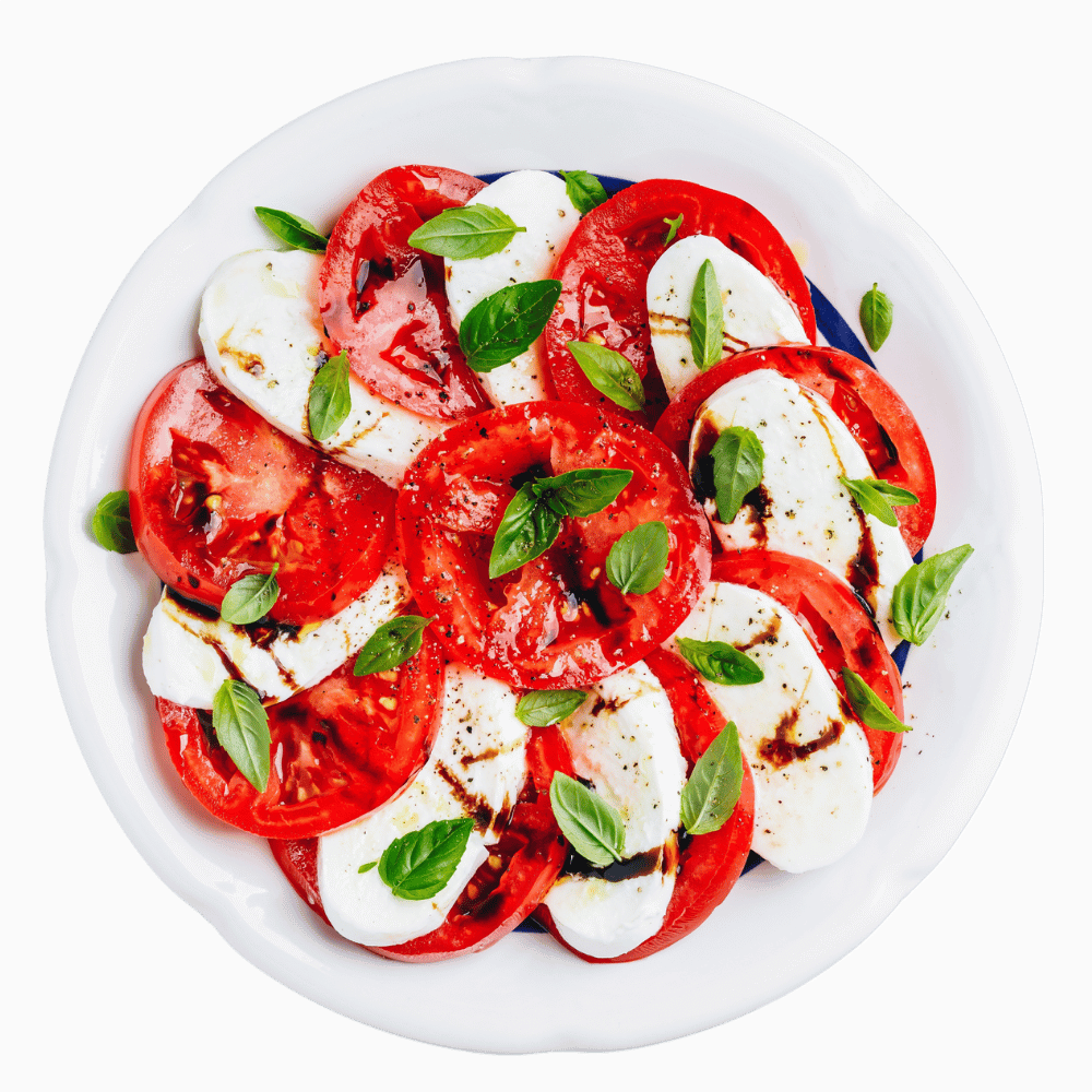 Tomaten, Mozzarella, Knoblauch, Zwiebeln, Olivenöl und Balsamico
