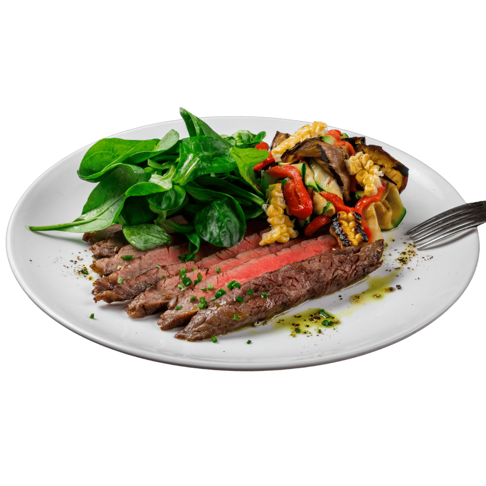 mit tomaten, Gurken, Rindfleischstreifen, Champignons, Zwiebeln, Mais und Knoblauch
