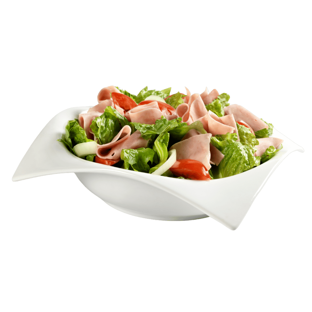 gemischt Salat mit Schnitzelstreifen, Kartoffelwedges, Tomaten und Gurken